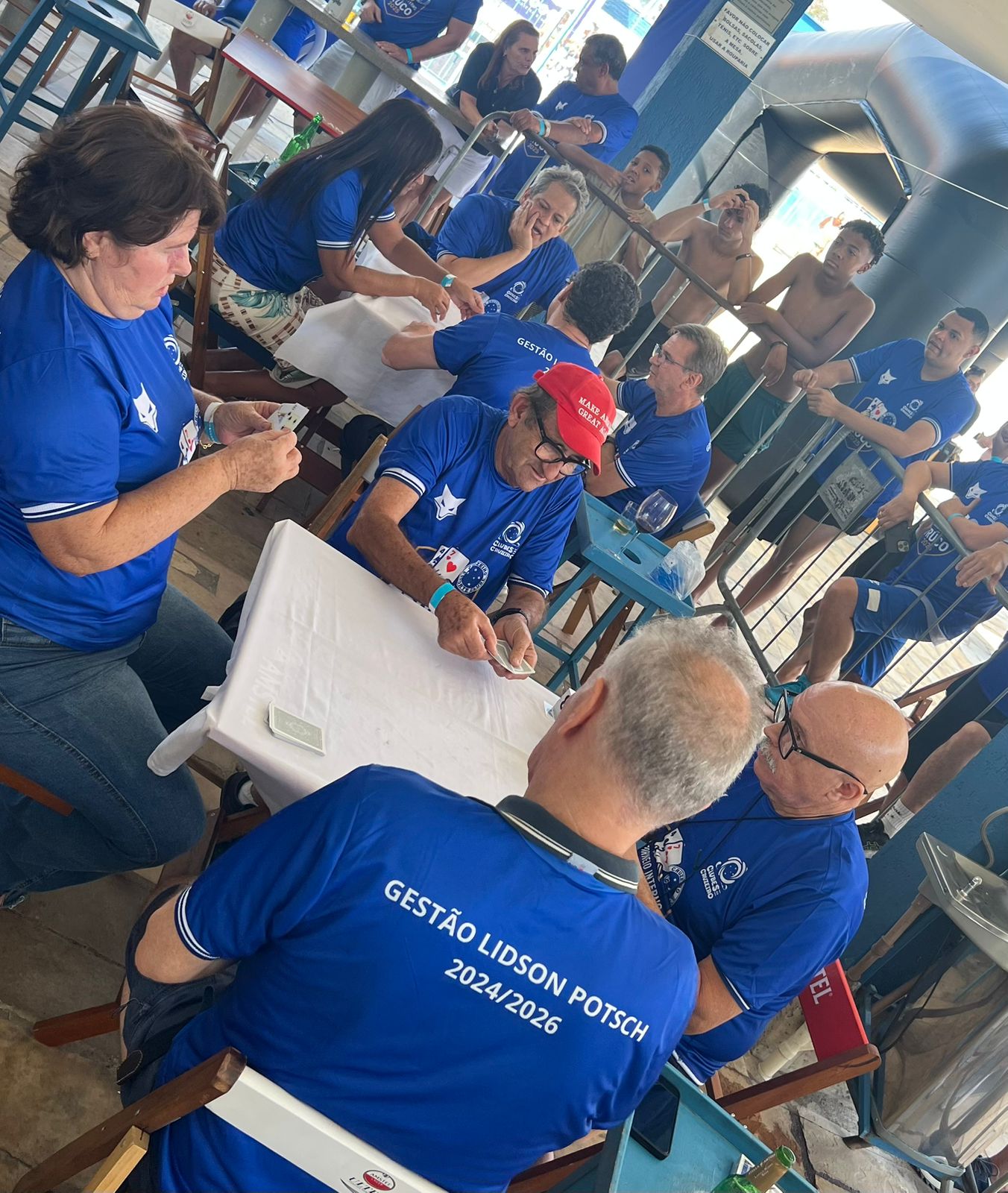 Ontem, a Sede Campestre recebeu mais uma edição do tradicional Torneio de Truco dos Clubes do Cruzeiro, realizado no Bar da Piscina. O evento contou com a participação de 32 duplas e seus convidados, que desfrutaram de um ambiente de confraternização e integração entre associados.